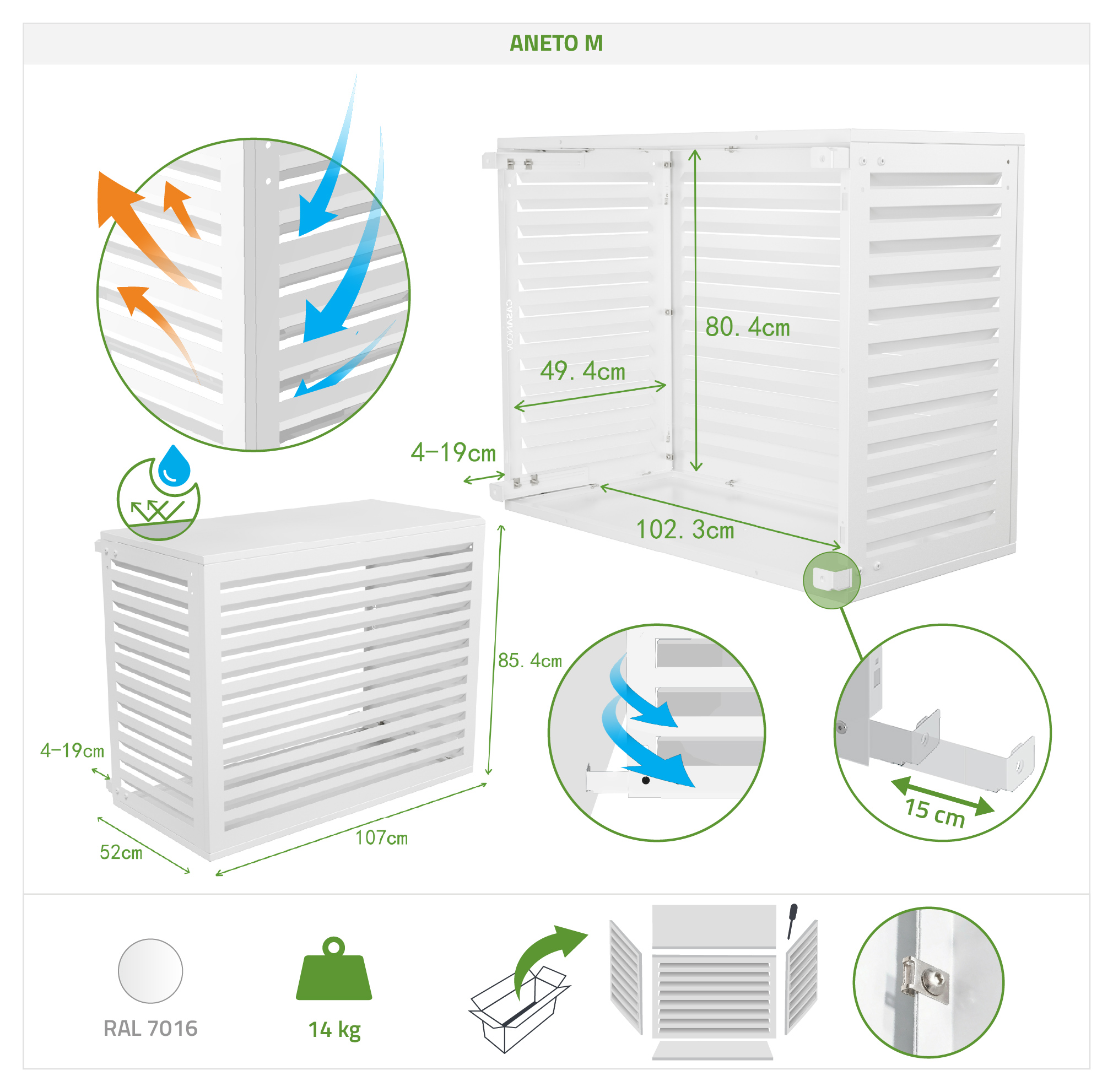 Aneto white aluminum air conditioner cover with bottom panel - size M