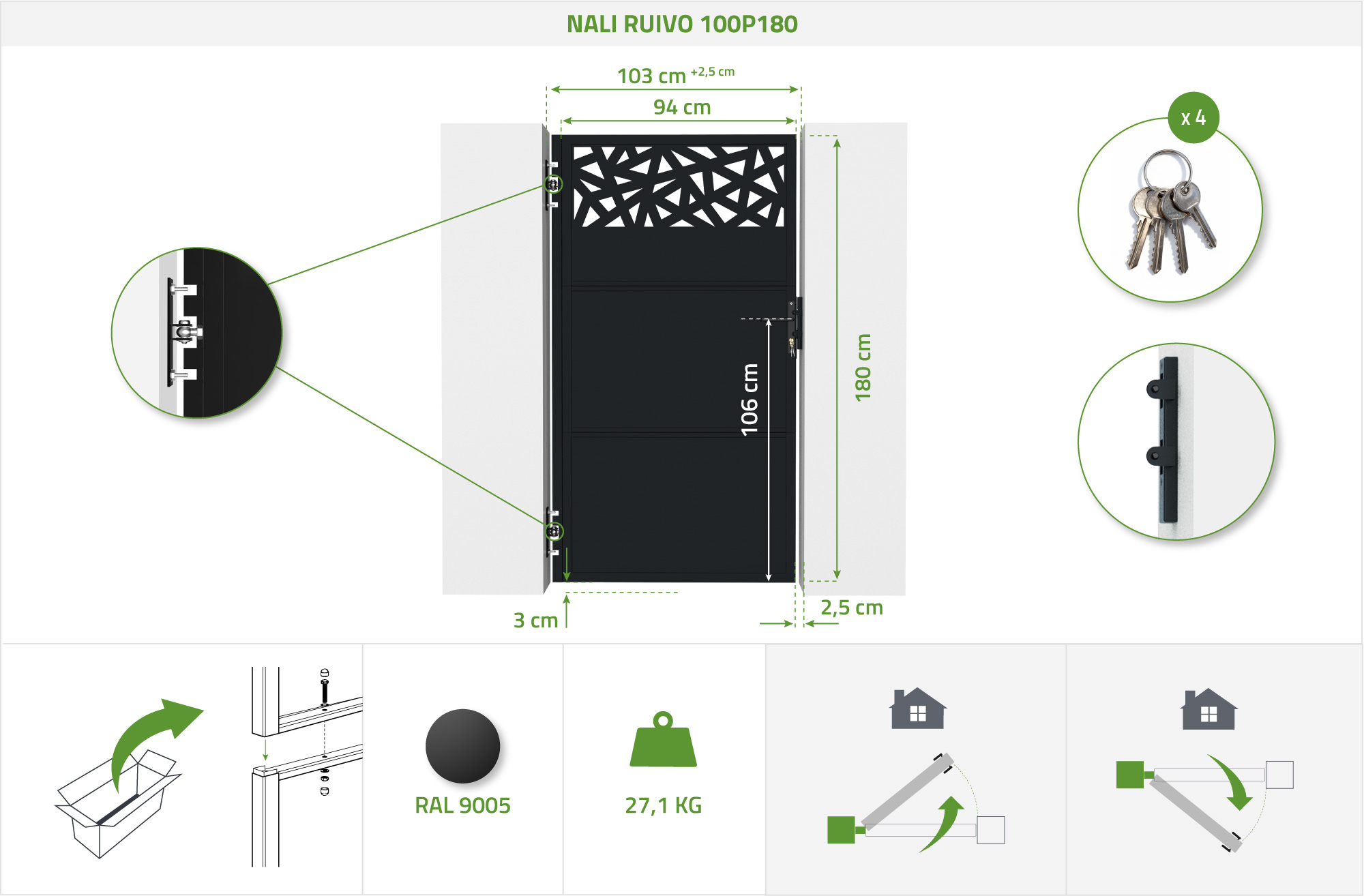 Steel gate 1m NALI RUIVO H.180cm matt black
